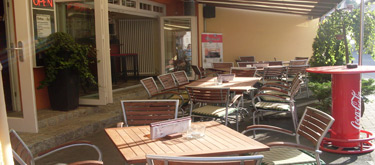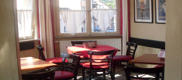 In unserem Erdgeschoß finden Sie einen gemütlichen Platz an der Theke ebenso, wie einige Tische für 2 bzw. 4 oder 6 Personen.